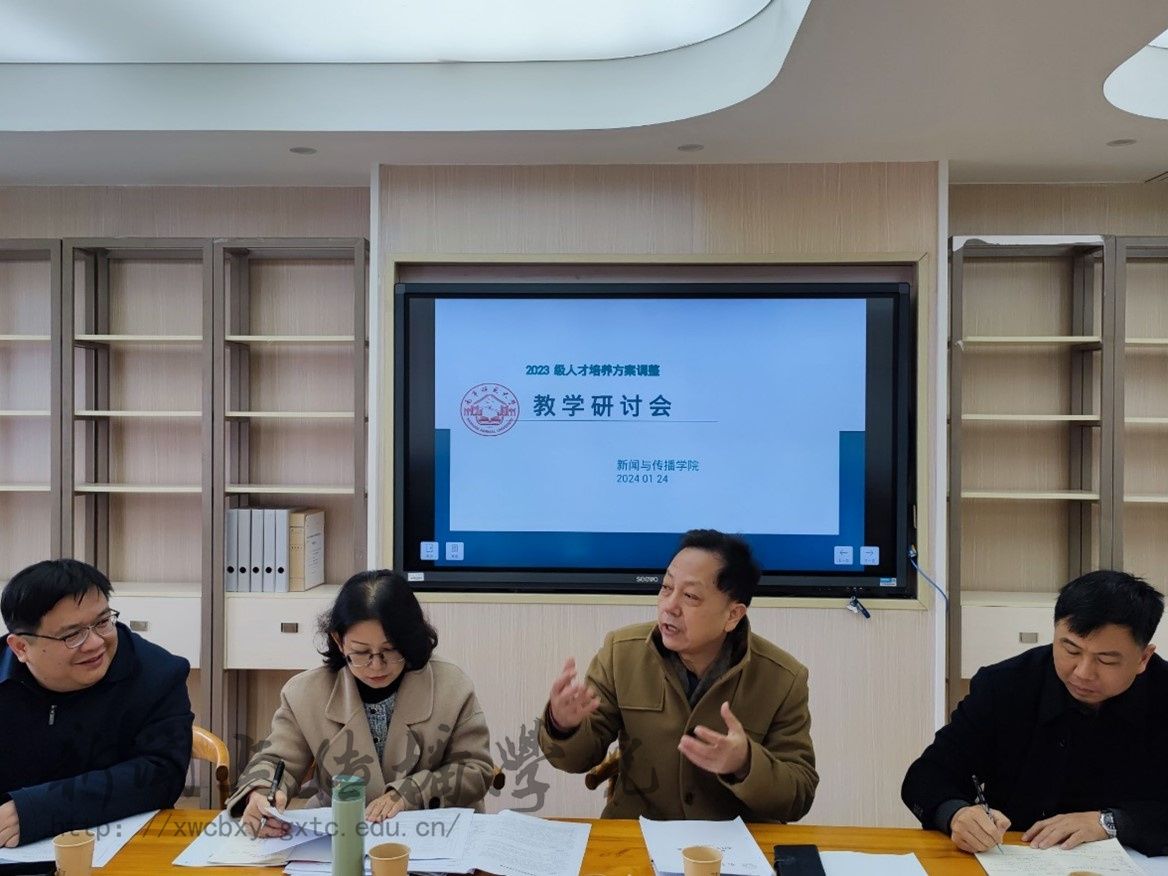 会议由学院院长陈洪波教授主持。陈洪波院长首先对四位专家的到来表示热烈欢迎,并简要介绍了学院的基本情况和专业人才培养方案修改的背景和目的。他指出,专业人才培养方案是高校教育教学的基本文件,是指导专业建设和人才培养的重要依据。为了适应新时代新闻传播事业的发展需求,提高学院的人才培养质量,学院对四个专业的人才培养方案进行了全面的修订和完善,希望通过专家的指导和建议,进一步优化和提升专业人才培养方案的水平。