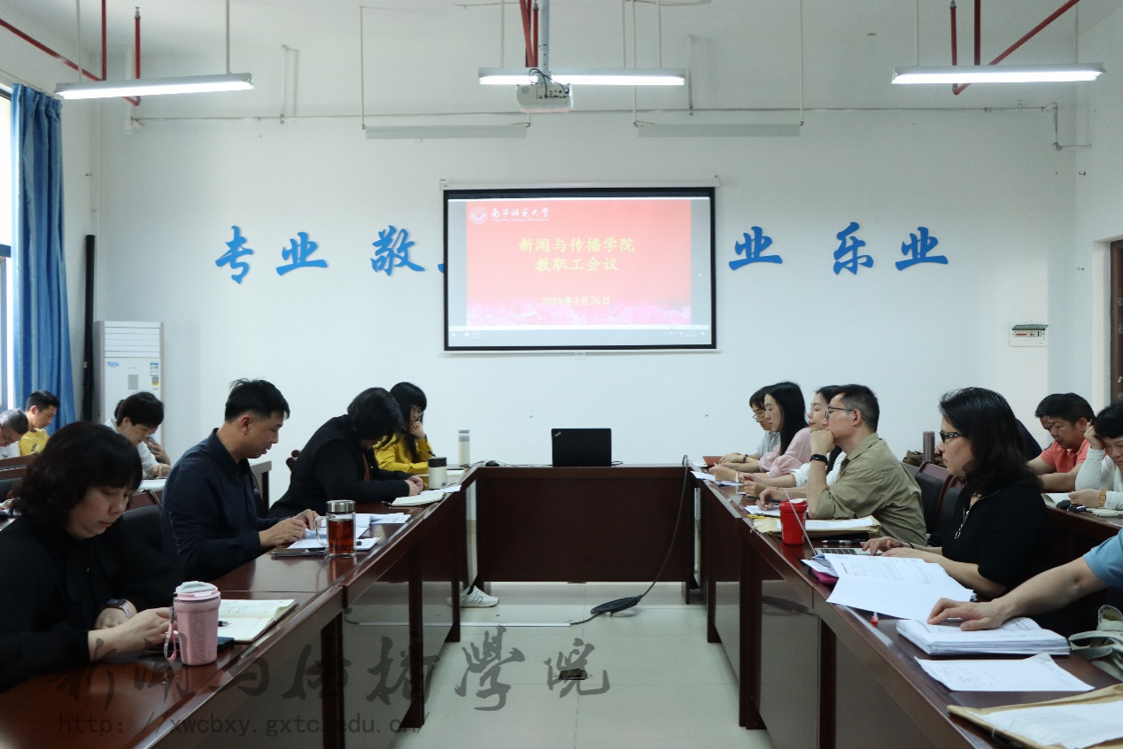 3月26日15时,我院于理综楼304会议室召开全体教职工会议。本次会议由学院党委副书记、院长陈洪波主持,学院领导班子和全体教职工参加。