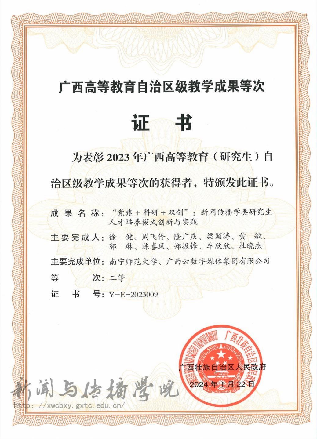 近三年,betway必威西汉姆联官网推动专业教育与思政教育有机结合,2项研究生教学成果荣获广西高等教育自治区级教学成果奖二等奖;教学团队先后主持承担14项教育部产学研项目,广西学位与研究生教育改革课题、广西研究生教育创新计划项目各1项,首批校级新文科研究与实践项目3项;1部教材获得广西社会科学优秀成果奖教材类三等奖,2部教辅用书获得广西社会科学优秀成果奖著作类三等奖;《红色文化融入新闻传播学课程思政的现实难点与实践路径》等多篇教改论文发表在国内中文核心期刊;《马克思主义新闻观》课程思政以学生为中心,以产出为导向,从目标、教学结构、考评上都作了精心的布置,受到学生一致好评,获评校级示范课程。学院整体的教学水平得到显著提升。