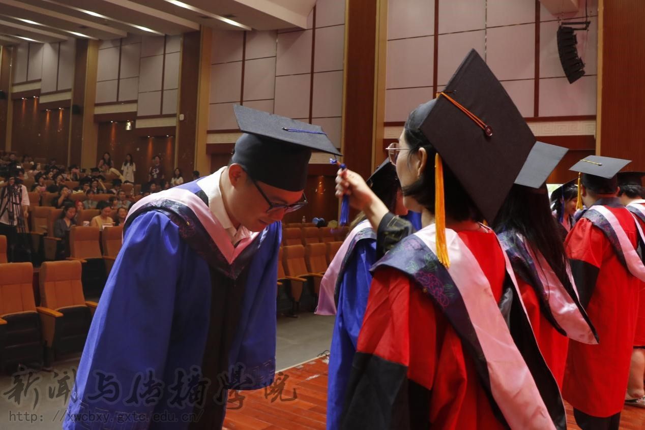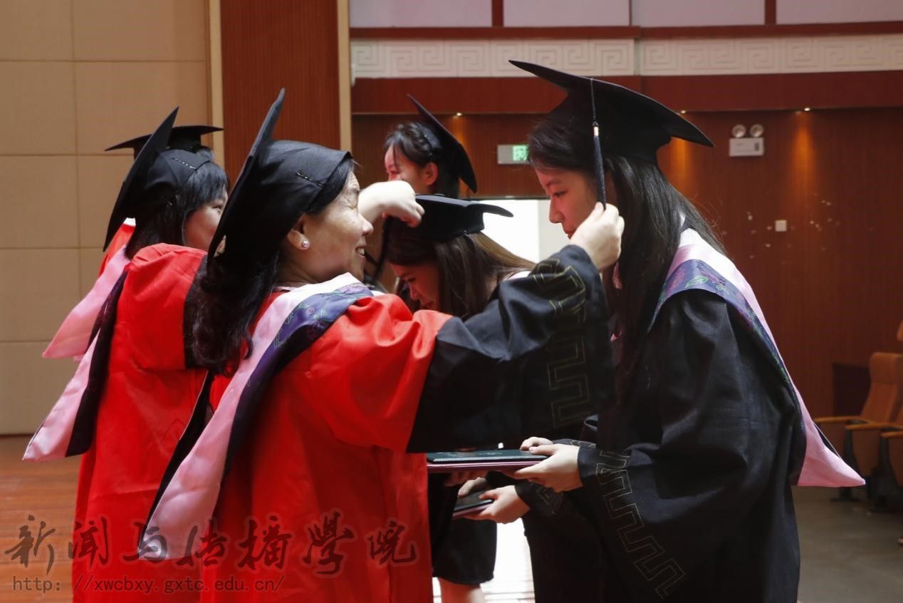 毕业生们观看祝福视频后,学生代表献唱《我们的明天》,将典礼氛围推向高潮。紧接着,学院学位委员会委员为2024届毕业生颁发毕业证、学位证并拨穗。