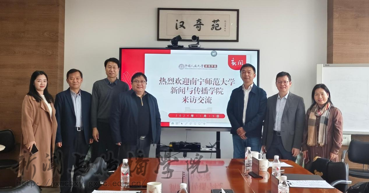 访问期间,南宁师范大学betway必威西汉姆联官网调研组受到了中国人民大学新闻学院的热情接待。双方围绕学科建设的核心要素、博士点建设的标准与要求、科研团队的组建与管理、高水平科研成果的产出以及国际学术交流与合作等议题进行了深入而细致的交流。