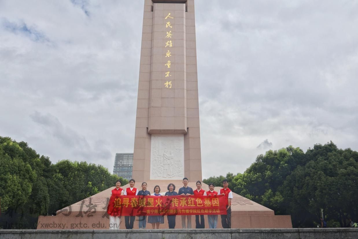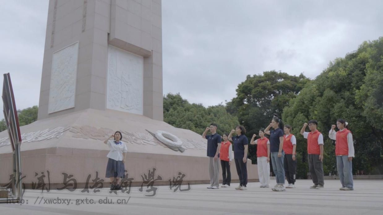 播音主持专业王雪瑶老师在纪念碑前录制专题党课,她谈到:“这座纪念碑不是历史的终点,而是精神传承的起点。唯有将英雄事迹代代相传,让‘人民英雄永垂不朽’的信念深植人心,方能告慰先烈英灵。”此举将课堂教学与红色实践有机融合,以生动形式推动革命精神入脑入心。