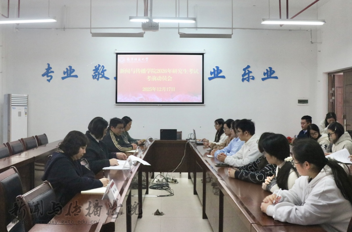 会上,梁颖涛院长结合自身考研经历,分享了考研经验,并为考生们提供了实用的备考建议。他提到,在考前最后冲刺阶段,考生既要注重知识的巩固梳理,更要做好身体调节与心态管理,建议大家保持清淡饮食、保证充足休息,以积极的心态从容面对考试。2022级新闻班谭金容同学作为学生代表分享备考心声,她向一直给予支持与关怀的师长、同窗及亲友表达了诚挚谢意,并祝愿全体备考同学在考场上出色发挥,取得优异成绩。