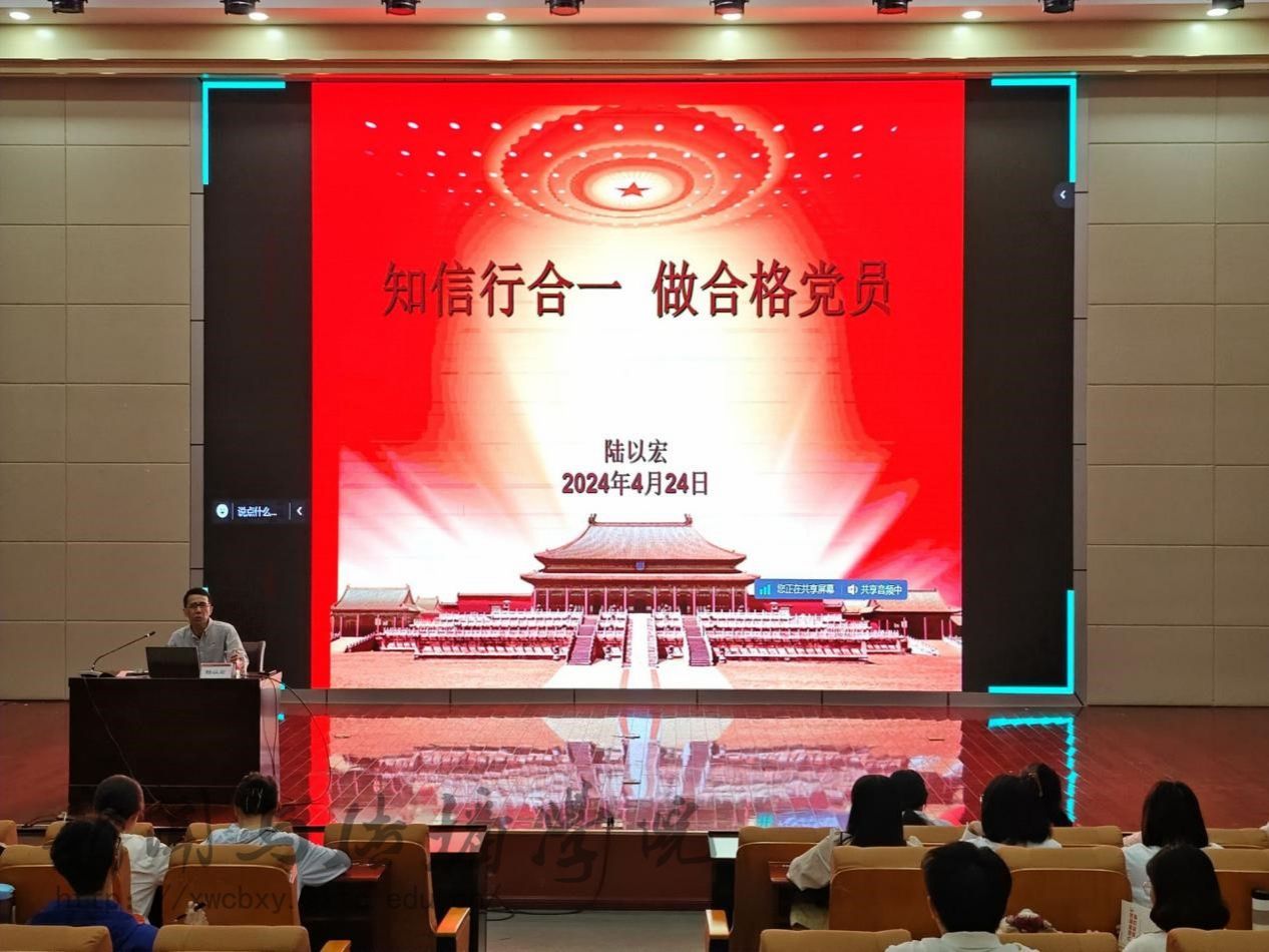 为进一步增强预备党员的党性修养, 4月24日晚,betway必威西汉姆联官网分党校在文综楼114报告厅举行第20期预备党员培训班第一讲,本次培训由初等教育学院党委书记陆以宏主讲。