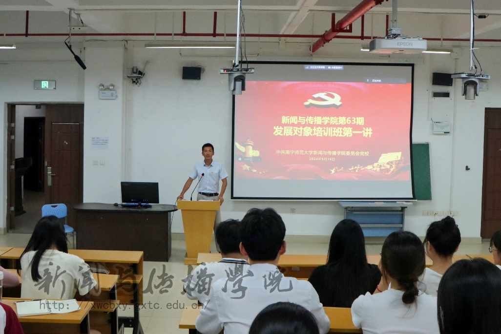 5月16日晚,betway必威西汉姆联官网第63期发展对象培训班第一讲在文综楼615室召开,本次党课由学院党委组织委员廖林泉主讲。
