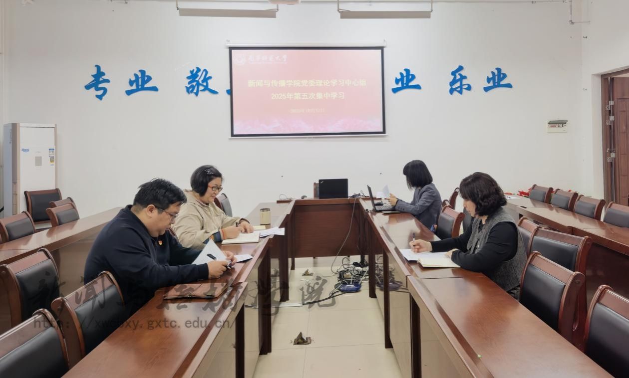 学习严格按照既定议程有序推进,首先中心组成员集体研读学习内容原文,进一步深化对理论精髓和纪律要求的理解。随后,学院党委书记聂卉作习近平总书记视察广西“4·27”重要讲话精神学习导读,从讲话的时代背景、核心要义、实践要求等方面进行深入解读,帮助成员们准确把握讲话精神的丰富内涵。