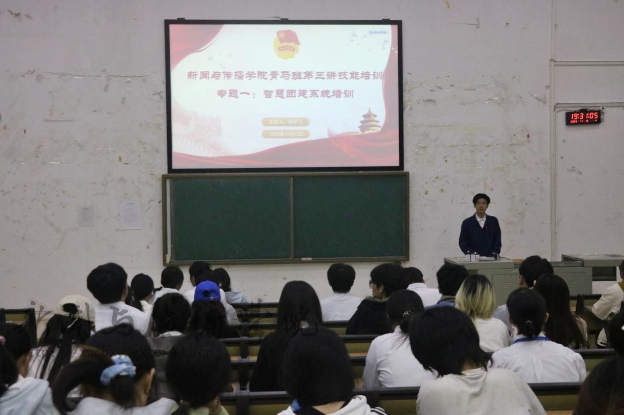 培训伊始,团委组织部部长肖宇飞围绕智慧团建系统展开讲解,详细介绍了教育实践、组织管理、团员团干部管理、团组织关系转接等核心板块的功能与操作流程。其次,他说明了团组织的管理工作直接关联评奖评优等关键事项,要求全体工作人员以严谨态度落实各项职责,确保工作规范高效。