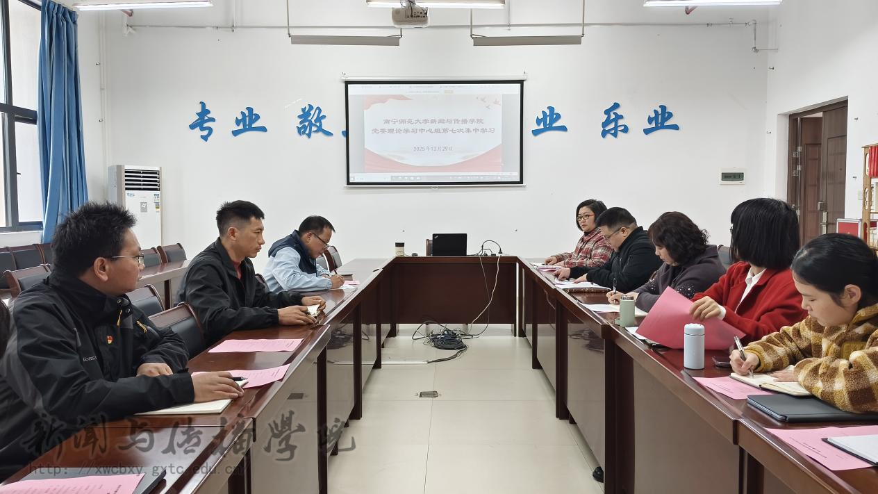 12月29日下午,学院党委理论学习中心组2025年第七次集中学习会在五合校区文理综合楼理304会议室召开。学院党委理论学习中心组成员参加会议,学院党委委员、纪委委员、各党支部书记、团委工作负责老师列席会议,会议由学院党委书记聂卉主持。学校党委委员、教育科学学院党委书记余朝文到会巡听旁听。