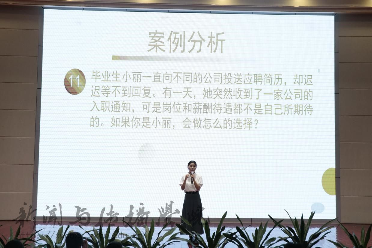 随后,钟振花老师给出四点建议:一是要始终坚定信念,自信从容地展现自我;二是学会排除干扰,专注核心问题;三是准确定位,多角度思索问题;四是总结自身表现,提升应对能力。她希望同学们借此机会更加清晰地认识自我,为未来职业发展做准备。