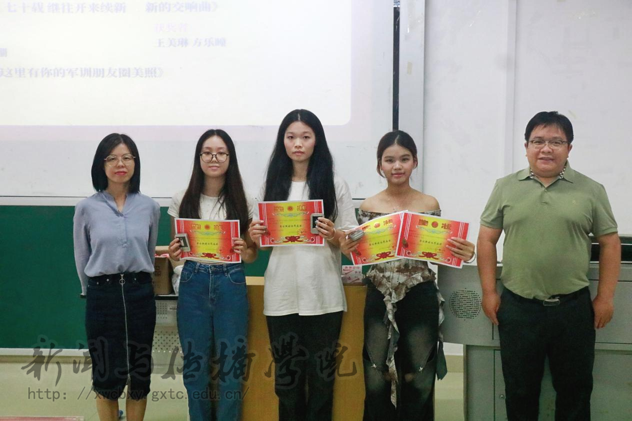 (梁颖涛老师和邓之湄老师为获奖同学颁奖并合影留念)
