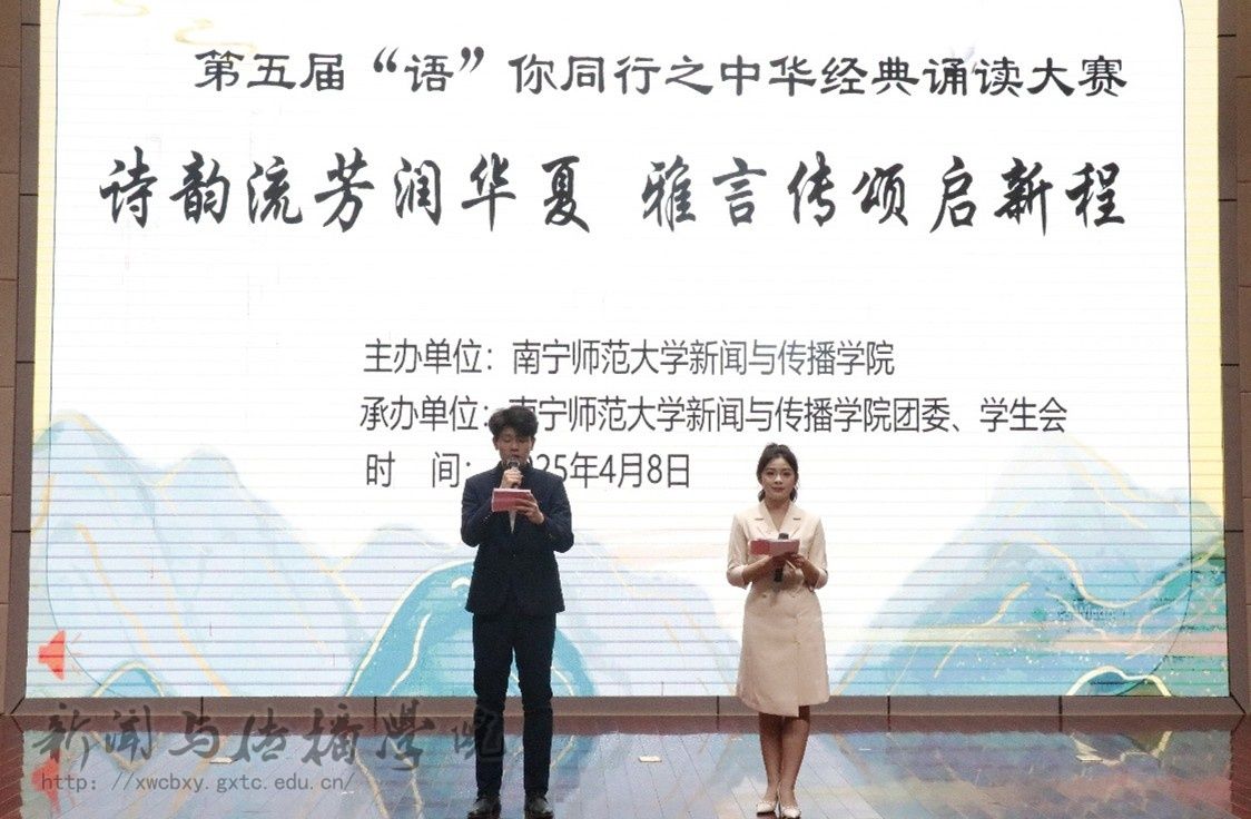 4月8日晚,我院在五合校区文综114报告厅举行第五届“语”你同行之“诗韵流芳润华夏,雅言传颂启新程”中华经典诵读比赛。本次比赛共有31组65位选手参与比赛,播音与主持艺术专业老师王雪瑶、李倩云、邓忠担任评委。