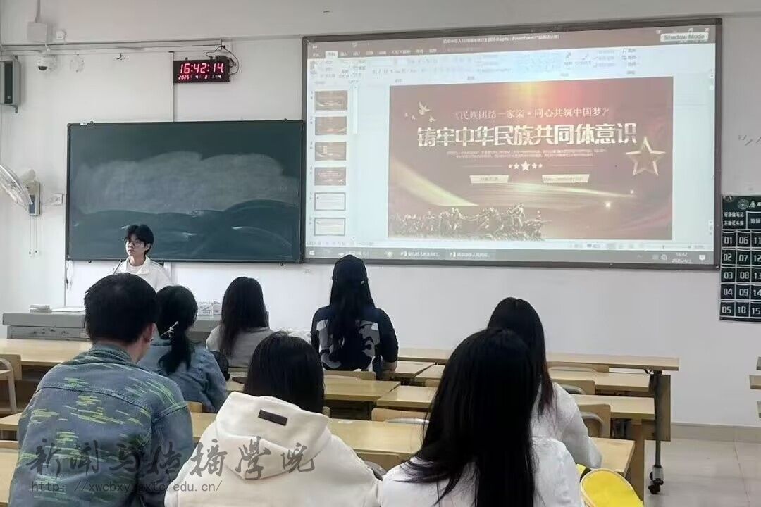 各班级负责人通过梳理党和国家的民族政策、播放民族团结宣传视频、分享民族团结先进典型等多种形式,向同学们介绍铸牢中华民族共同体意识的概念及维护民族团结重要性,引导大家树立正确的国家观、历史观、民族观、文化观,增强维护民族团结的责任感与使命感。