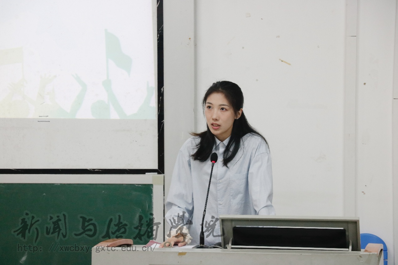 课堂上,谢锦怡同学介绍了普通话考试的主要内容、评分标准以及题型构成,并结合亲身经历,分享自己在考试中遇到的问题及应对策略,并总结了一套实用的考试技巧供同学们参考。最后,她通过趣味互动游戏,引导同学们进行发音校正训练,让同学们在游戏中提高普通话发音的准确度,增强语感。