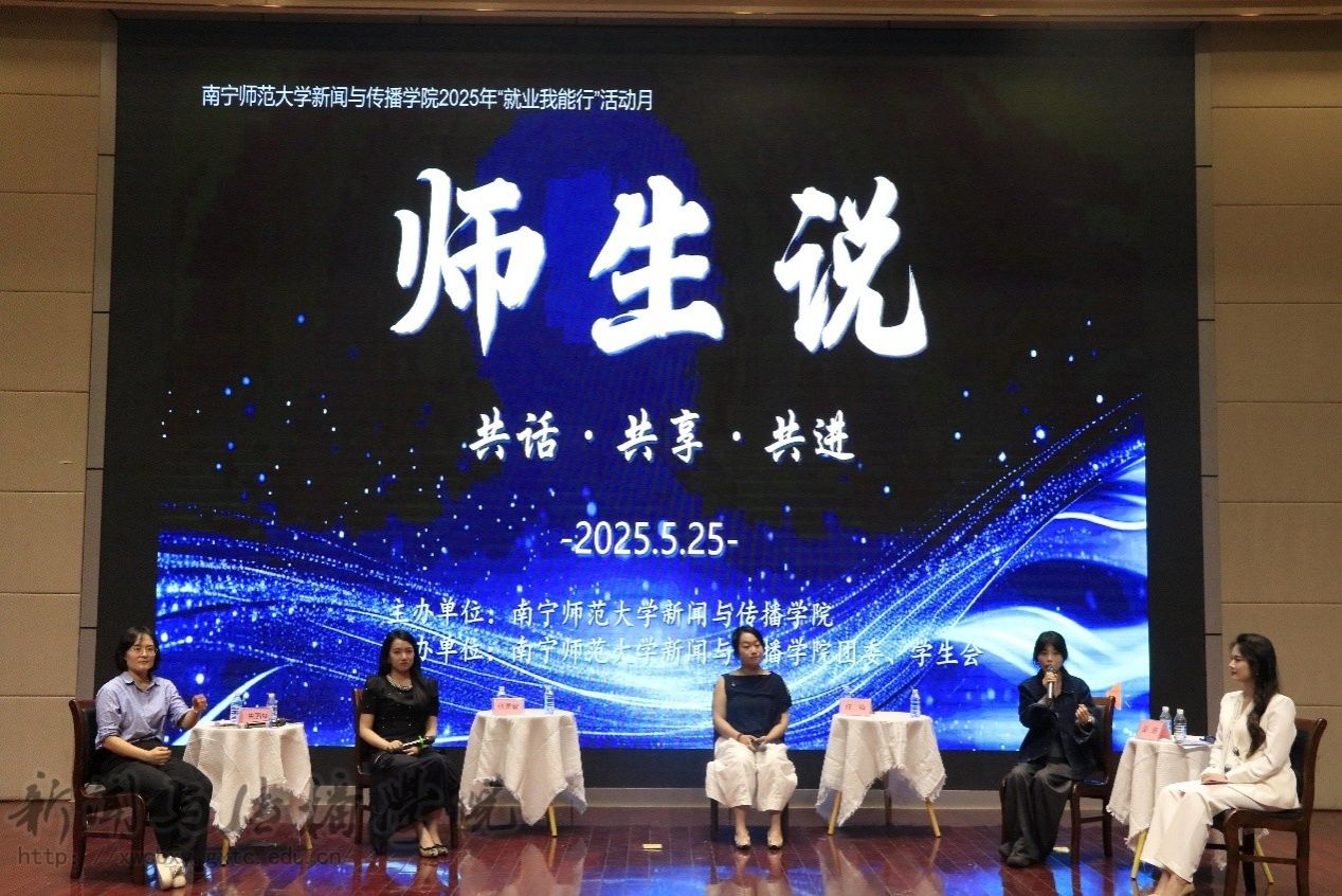 5月25日晚,betway必威西汉姆联官网在文综114报告厅举办“就业我能行”活动月之“师生说”访谈会。学院党委副书记黄敏、院长助理宋丽丽、团委书记李樱花、学工办辅导员兰浩玮以及2011届新闻学专业佟镝、2021届播音与主持艺术专业张灵智、2022届广告学专业麦昕三位毕业生代表到场参加。