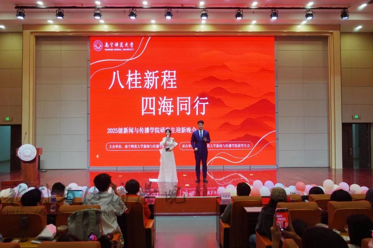 10月24日晚,betway必威西汉姆联官网举办以 “八桂新程,四海同行” 为主题的2025级研究生迎新晚会。学院党委书记聂卉、院长梁颖涛、副院长周飞伶,学工办辅导员唐兰、覃力、兰浩玮到场参加,与全体研究生新生共赴青春之约。